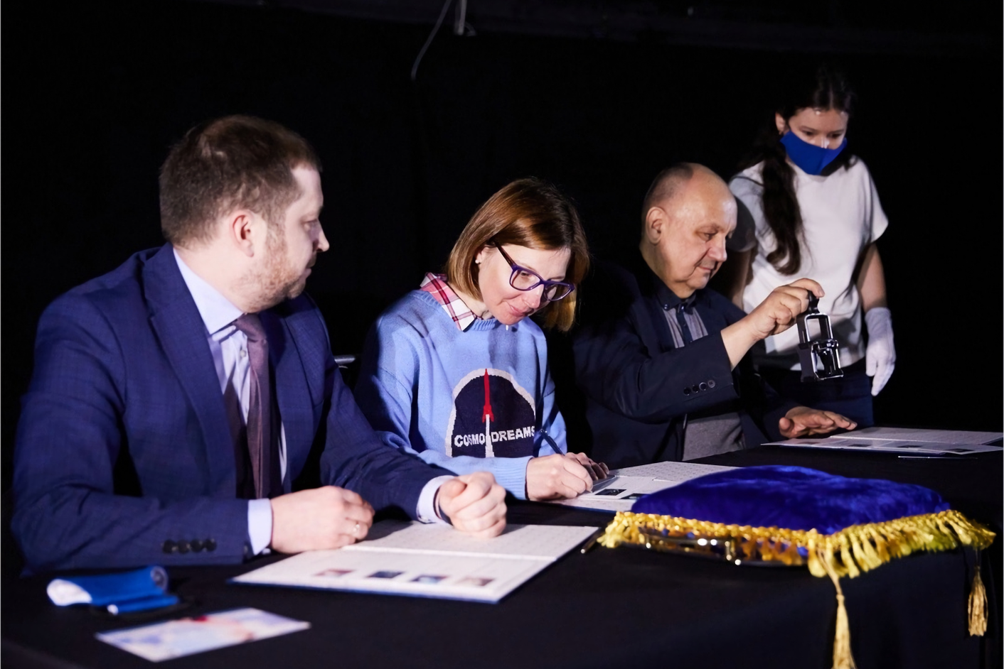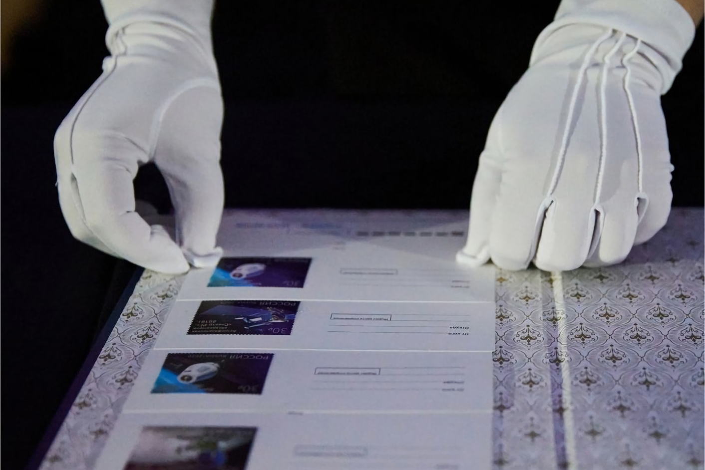 At a special cancellation ceremony on April 12th, Marina Fedorova, representatives of Russian Post and St. Petersburg Planetarium applied commemorative postmarks to the postcards.