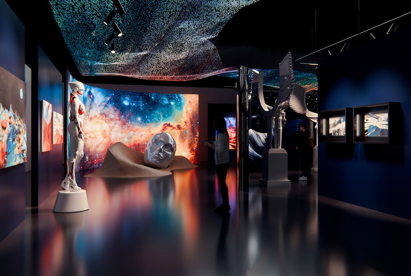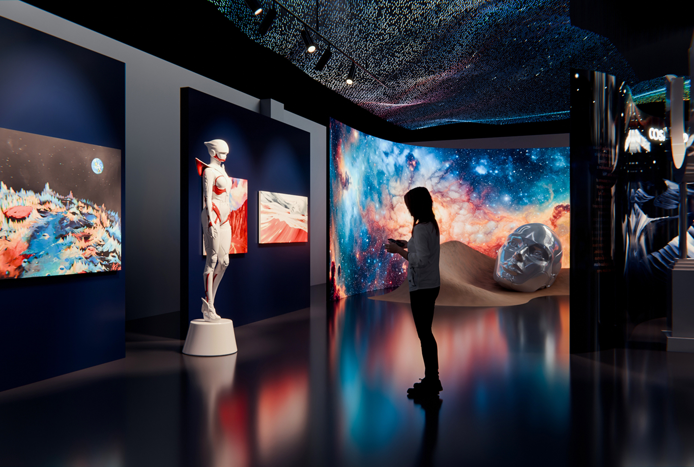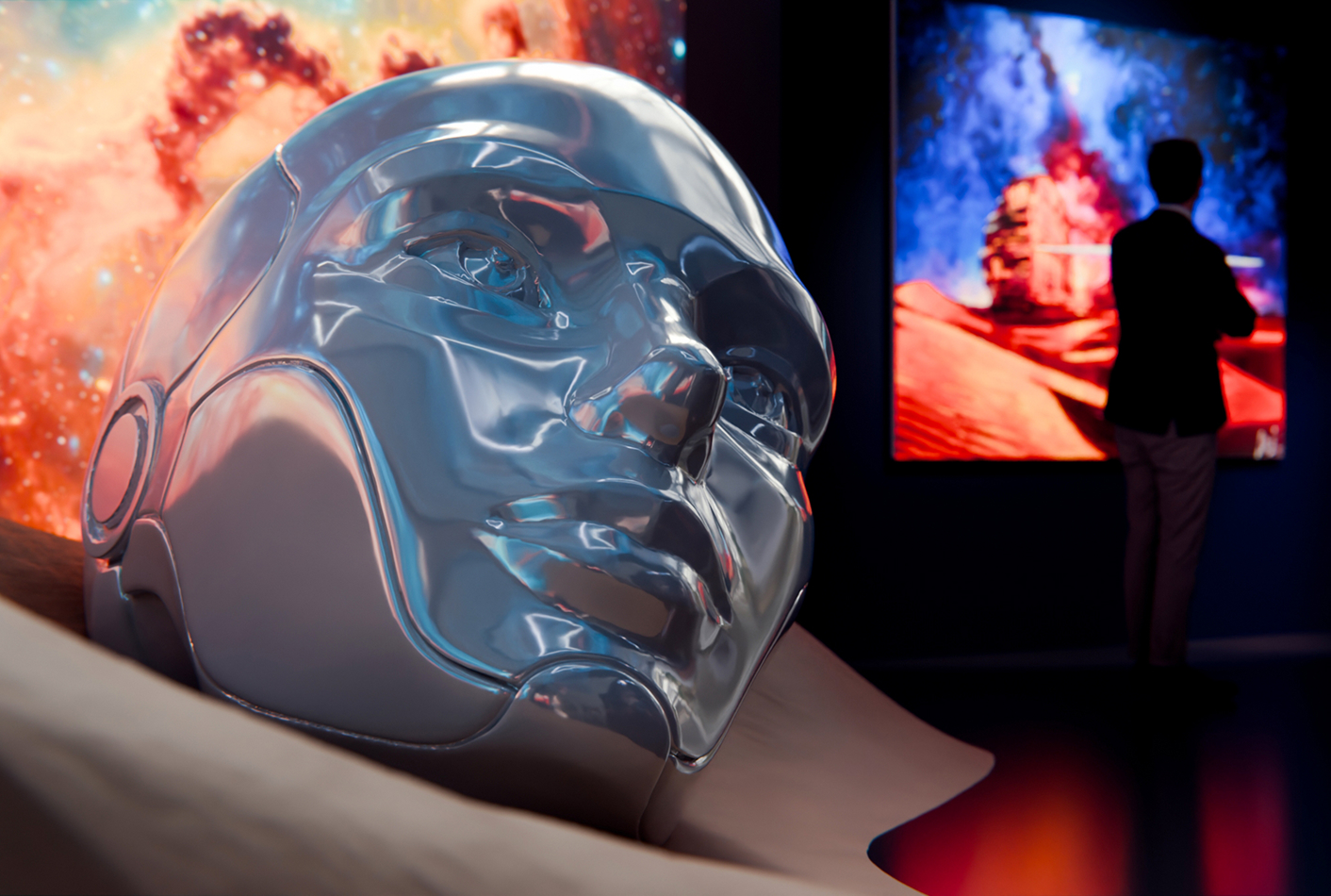 The project unites vast oil paintings, monumental sculptures, and interactive augmented reality into a seamless narrative, re‑casting the Kingdom’s landscapes, monuments, and cultural symbols within a futuristic artistic universe. Visitors are invited to embark on a multi‑sensory journey where tradition, technology, and cosmic aesthetics converge.