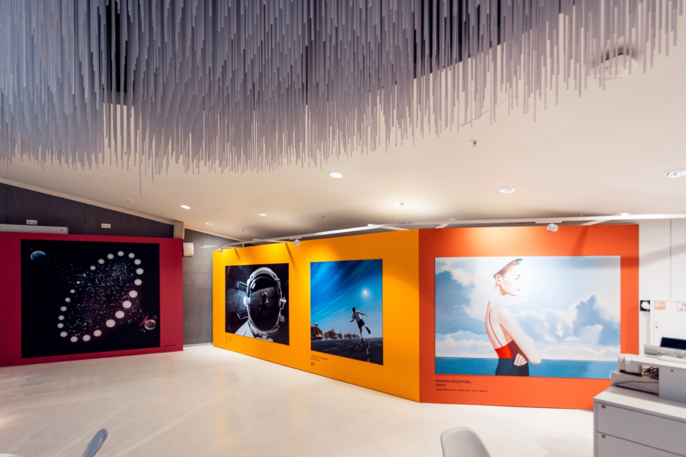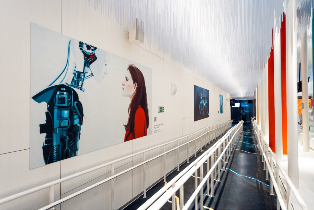 Zaryadye displayed four art prints from Marina Fedorova’s “Cosmodreams” series. These originally were oil paintings exploring various aspects of space exploration and inhabitation. Several artworks featured augmented reality scenarios.