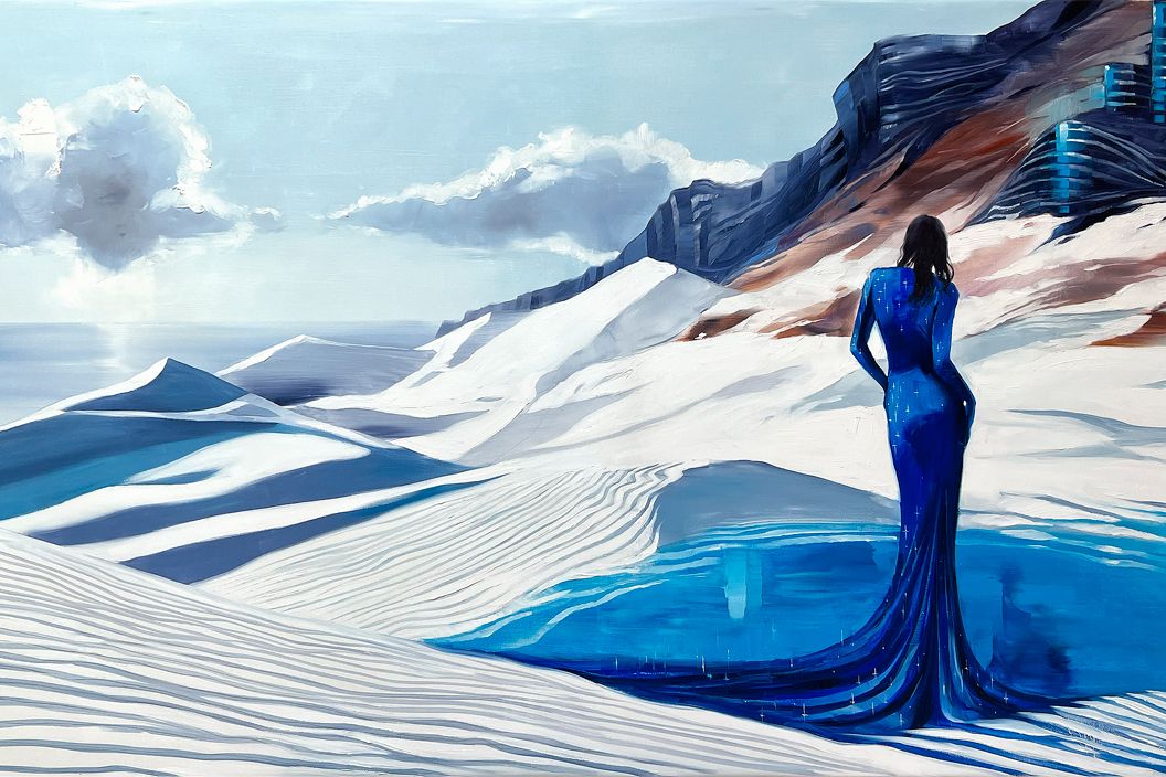 In “Ethereal Echoes,” Fedorova’s select paintings from the Cosmodreams series meet Akbar’s contemporary dresses, creating a harmonious blend. The integration of augmented reality enhances the visual experience, while drawing inspiration from Saudi Arabia’s heritage adds cultural depth to the showcase.