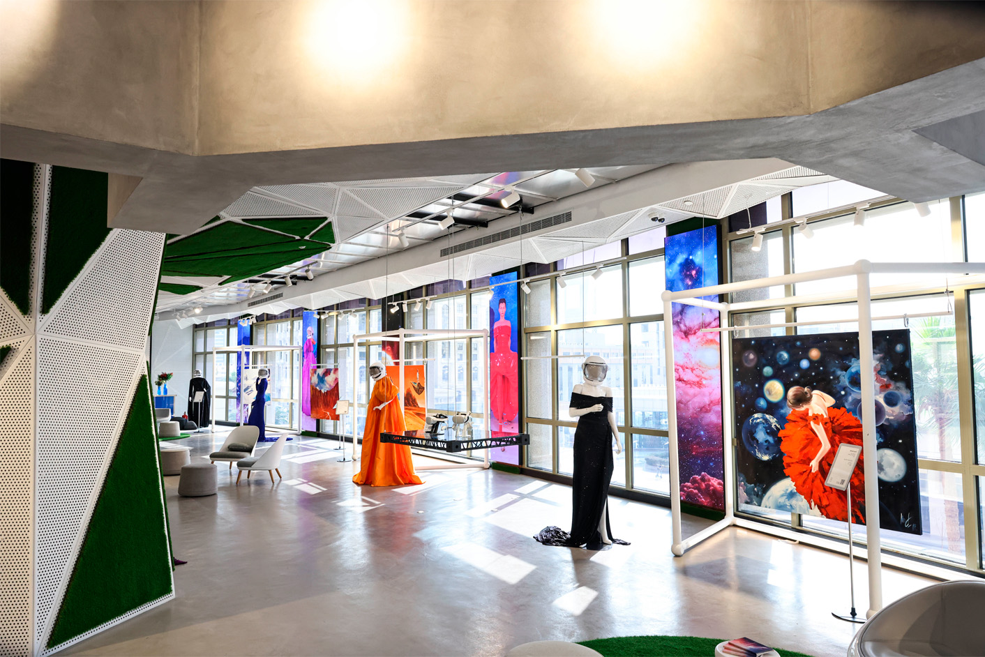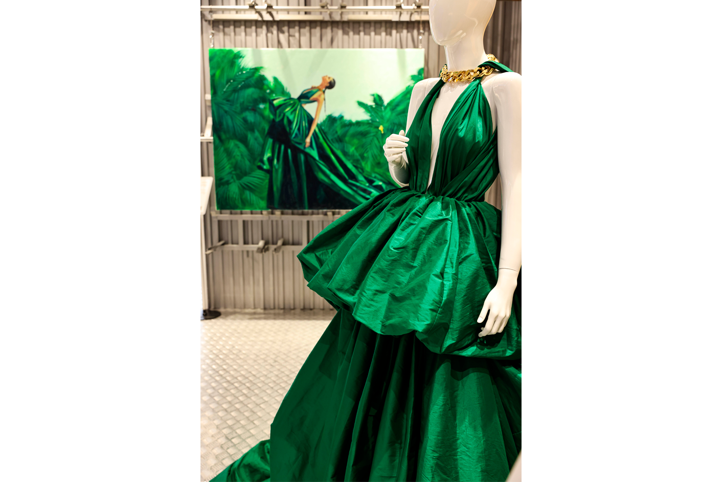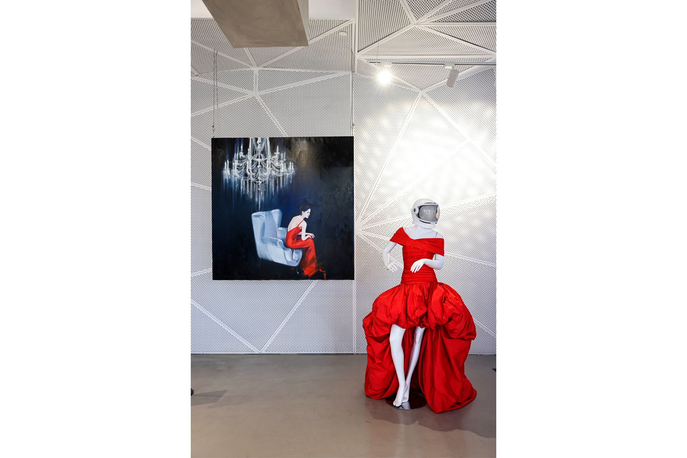 In this extraordinary collaboration, Yousef Akbar’s mesmerizing dresses are paired with Marina Fedorova’s evocative paintings from the Cosmodreams project. The exhibition showcases the seamless integration of these diverse artistic mediums and backgrounds, including works inspired by each other’s creations. It is a harmonious synthesis of fashion and art, bringing together the vibrant hues of Akbar’s designs with the cosmic narratives woven by Fedorova.