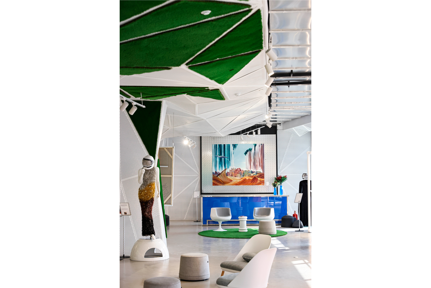 VR Cosmo Fashion Show is an unparalleled experience developed by Marina Fedorova featuring digital models of Yousef Akbar’s bespoke outfits..She creates sketches and drawings that become a tribute to the trends of the time, transforming the traditional concept of a fashion show into a virtual one. Models resemble mannequins in a fashion boutique. They are placed in an extraterrestrial landscape that indicates a neutral world where nations and cultures are equal.