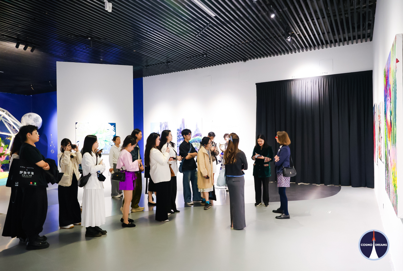 “Journey with Cosmodreams” features interactive elements, including augmented reality (AR), enabling visitors to discover hidden surprises within the artworks. By scanning QR codes located near specific pieces, audiences can access additional content through the official WeChat mini program. This enhances their engagement and creates a dynamic, personalized art experience.