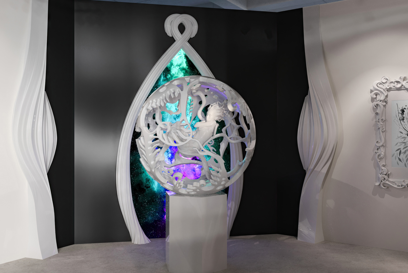 At Jingart 2024, Sputnik Partners is exhibiting six works under the topic Birth. The concept is inspired by Fedorova’s virtual project – Space Art Odyssey – unveiled in 2020. Her vision transcends terrestrial boundaries, envisioning a museum beyond Earth – a sanctuary where the vital elements nourishing life intertwine, shaping the essence of existence.